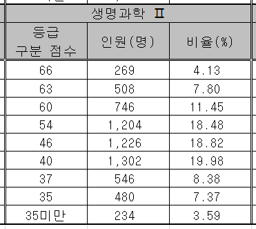 ▲ 생명과학Ⅱ 등급 구분 표준 점수. [한국교육과정평가원 제공] |