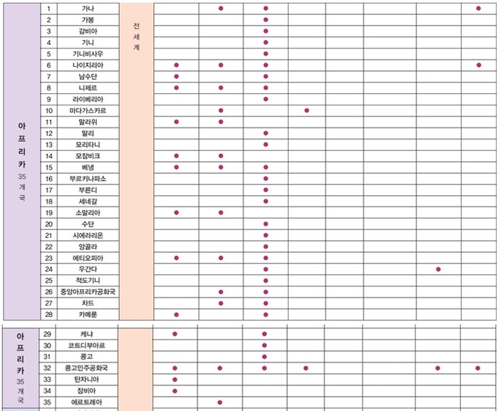 ▲ 2023년 1월 1일 기준 아프리카 검역관리지역. [질병관리청 제공] |