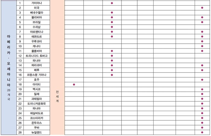 ▲ 2023년 1월 1일 기준 아메리카와 오세아니아 검역관리지역. [질병관리청 제공] |