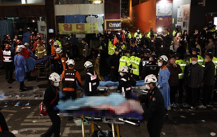 | ▲ 지난 29일 발생한 서울 용산구 이태원 핼러윈 인명사고 현장에서 부상자가 병원으로 후송되고 있다. [서울=연합뉴스] |