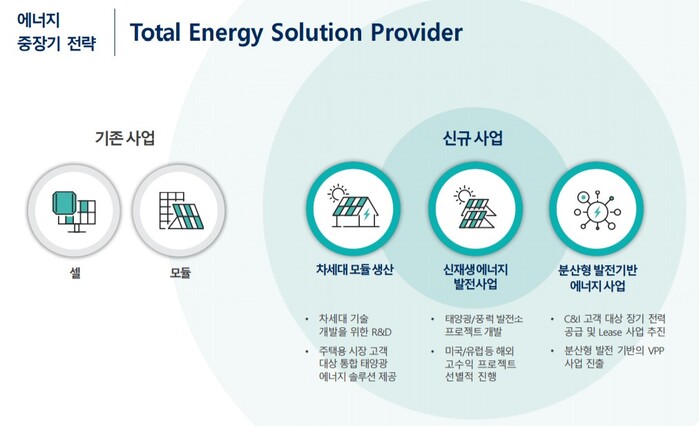 국내선 페로브스카이트 등의 차세대 태양광 전지에 대한 투자를 확대한다. 해외에선 지난해 가상발전소(VPP) 사업의 기반이 되는 소프트웨어 업체인 미국 젤리를 인수한 데 이어, 기후 변화 대응 기술 개발 기업에 대한 추가적인 투자와 인수·합병도 추진 중이다.