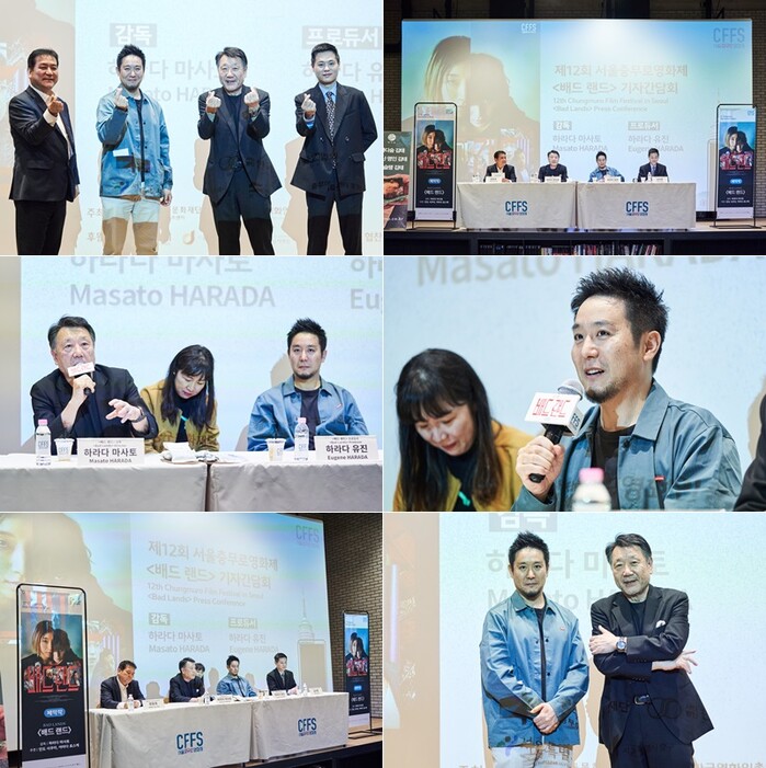 하라다 마사토 감독은 지난 10월 31일 CGV명동역 씨네라이브러리에서 열린 ‘배드랜드’ 기자 간담회 및 상영회 참석 차 내한했으며 이날 현장에는 하라다 유진 프로듀서, 양윤호 집행위원장, 김아론 프로그래머도 함께했다.