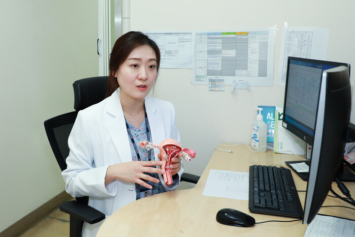 | ▲이영주 강동경희대병원 산부인과 교수가 진료하고 있다. [사진=강동경희대병원] |