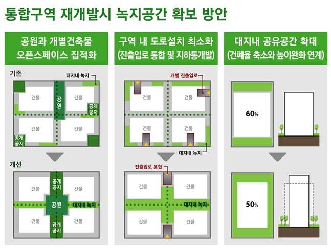 ▲ 통합구역 재개발시 녹지공간 확보 방안. [서울시 제공] |
