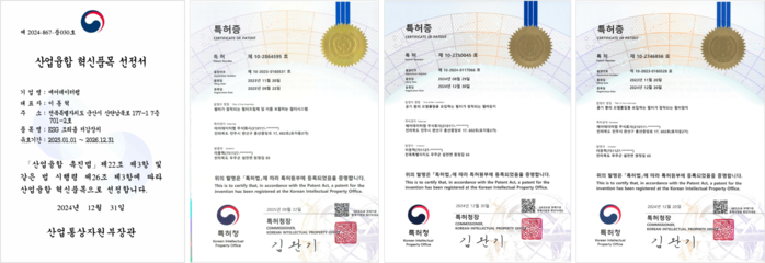 | ▲ 에어데이터랩이 보유한 선정서 및 특허증 [이미지자료=에어데이터랩 제공] |