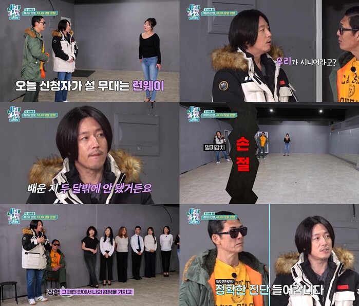 이날 ‘박장 브로’는 “생애 첫 무대에 서는데 너무 떨려요. 응원과 도움이 필요합니다”라는 ‘콜’을 받고 한 연습실로 향한다. 노래나 연기 무대일 거라 예상했던 두 사람은 연습실에서 ‘초보 시니어 모델’이라는 신청자를 만나 당황한다. 특히 박준형은 50대 초반이라 신청자의 나이에 놀라서 “50대가 시니어 모델이라고 하니까 기분이 좀 안 좋다. 미국에서는 64세부터 시니어인데 한국에선 50대부터라고? 우리가 왜?”라며 세상 억울해한다. ‘만 56세’ 박준형의 절절한 하소연에 ‘만 49세’ 장혁은 “왜 우리라고 그러냐? 난 빼 달라. 난 아직 주니어다”라고 칼 같이 선을 그어 현장을 웃음바다로 만든다.