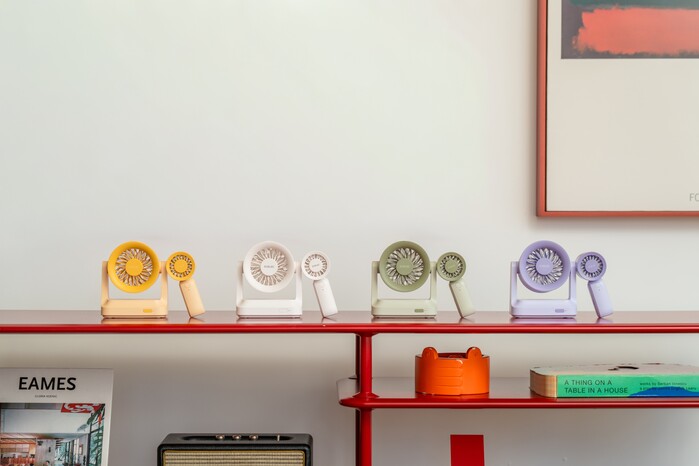 이번 신제품은 핸디형과 탁상형 선풍기를 하나의 세트로 구성해, 외출 시에는 가볍게 들고 다니는 핸디형으로, 실내에서는 책상 위에 안정적으로 거치해 사용하는 탁상형으로 활용 가능해, 하루의 동선에 맞춰 유연하게 사용할 수 있다.