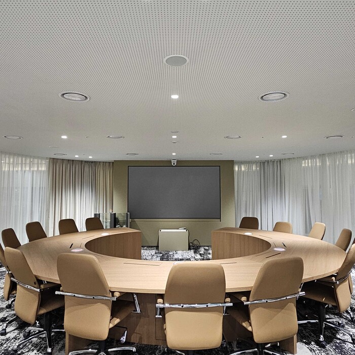 실제로 해당 제품은 전면 타공 설계를 통해 패턴이 자연스럽게 이어지도록 구현돼 천장을 하나의 면처럼 보이게 하는 시각적 효과를 제공한다. 이를 통해 공간을 보다 넓고 개방감 있게 연출할 수 있다.
