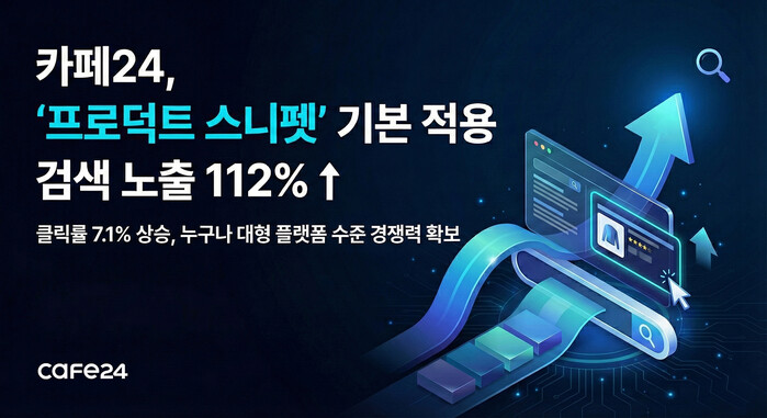 글로벌 전자상거래 플랫폼 '카페24(대표 이재석)'는 지난 10월부터 온라인 쇼핑몰 SEO 품질 향상을 위해 '프로덕트 스니펫(Product Snippet)' 기능을 기본 적용 방식으로 전환한 결과, 46일(10월 1일~11월 15일) 만에 온라인 쇼핑몰의 검색 노출수(Impression)가 평균 약 112% 증가하는 성과를 거뒀다고 1일 밝혔다.