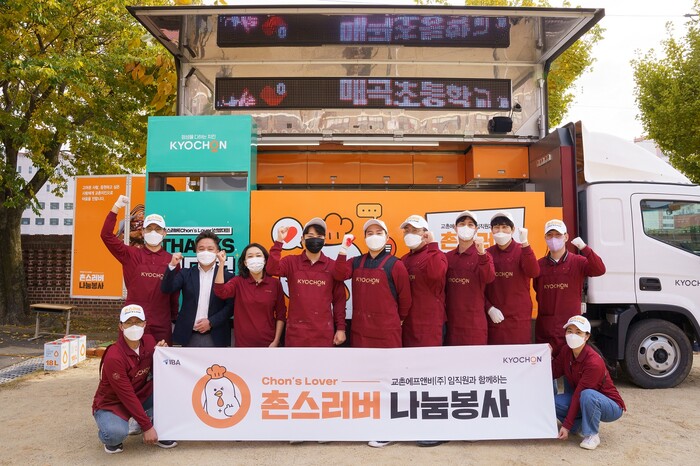 교촌 임직원들은 푸드트럭과 함께 학교를 방문해 학생과 임직원들에게 허니오리지날, 발사믹치킨 등 약 100여마리의 치킨을 전달했다.