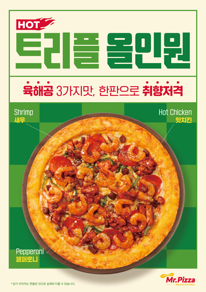 미스터피자 관계자는 “트리플 올인원 피자는 가족, 연인, 친구와 함께하는 봄철 식사 자리에서 모두가 만족할 수 있도록 세심하게 준비한 취향 저격 메뉴”라며 “눈과 입을 동시에 유혹하는 육해공의 조화가 소비자들에게 봄의 생기를 전하며 특별한 미식 경험으로 인도할 것”이라고 말했다.