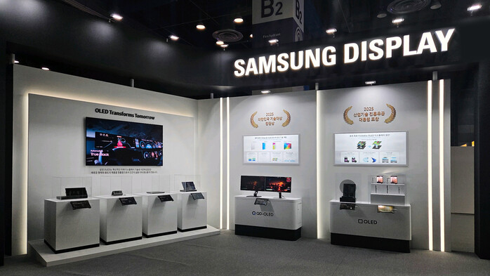 삼성디스플레이는 지난 3일부터 오는 5일까지 서울 코엑스에서 열리는 '2025 코리아 테크 페스티벌'에서 '대한민국 기술대상' 장관 표창을 수상, 수상 제품인 QD-OLED를 비롯해 폴더블 디스플레이 등을 전시 중이다. '대한민국 기술대상'은 1992년 제정된 국내 최고 권위의 기술상으로, 산업통상부와 한국산업기술기획평가원(KIET)이 국내 주요 기업을 대상으로 ▲기술의 가치 ▲기술개발 역량 ▲기술의 사업화 등을 평가해 수여하는 상이다.