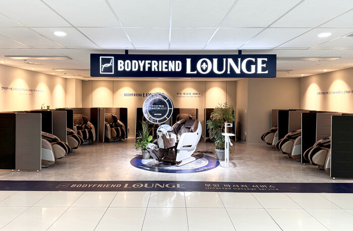 바디프랜드 공유안마의자 라운지에는 다중이용시설 전용 마사지체어 ‘비프리(Be Free)’가 설치돼 있다. 비프리는 국내 최초로 1회 작동 후 자동 살균·소독을 하는 'UVC 자동 살균' 기능을 갖췄다. 신발을 벗지 않은 채 편하게 착석하고, 6개의 퀵버튼으로 짧은 여유시간에도 빠르게 이용할 수 있다.