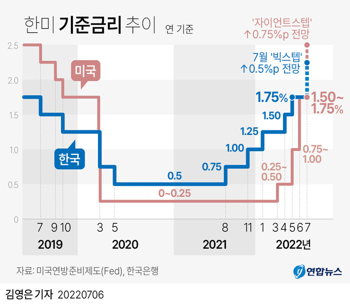 통상적 인상 폭의 두 배인 '빅스텝'은 한은의 기준금리 결정 역사상 처음이다.