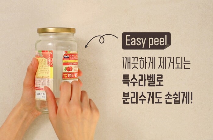 새로 리뉴얼되는 프레스코 스파게티 소스는 분리배출과 재활용이 용이하도록 리무버블 스티커인 '이지필'을 적용했다. 병에서 쉽게 떼어지는 특수 라벨 원단으로 접착제나 잔여물이 남지 않고 깔금하게 제거돼 제품 사용 후 폐기시 손쉽게 분리수거를 할 수 있다.