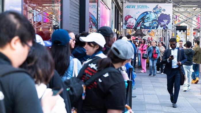 | ▲팝업 스토어 ‘뉴욕 위드 쿠키런’ 오픈을 기다리는 방문객들이 매장 밖으로 긴 대기줄을 형성하고 있다. [사진=데브시스터즈] |