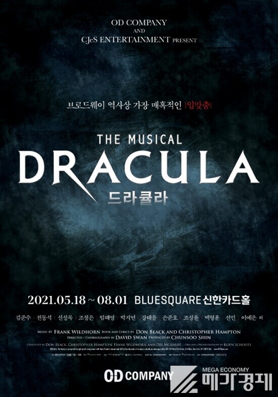 5월 18일부터 8월 1일까지 서울 한남동 블루스퀘어 신한카드홀에서 공연되는 뮤지컬 드라큘라는 1897년 출품된 아일랜드 소설 ‘드라큘라’를 각색한 작품으로, 400여 년이 넘는 긴 시간 동안 한 여인만을 사랑한 드라큘라 백작의 이야기를 담고 있다. 2014년 초연 당시 티켓 오픈마다 예매 사이트 서버가 다운되는 등 큰 인기를 얻고 있다.