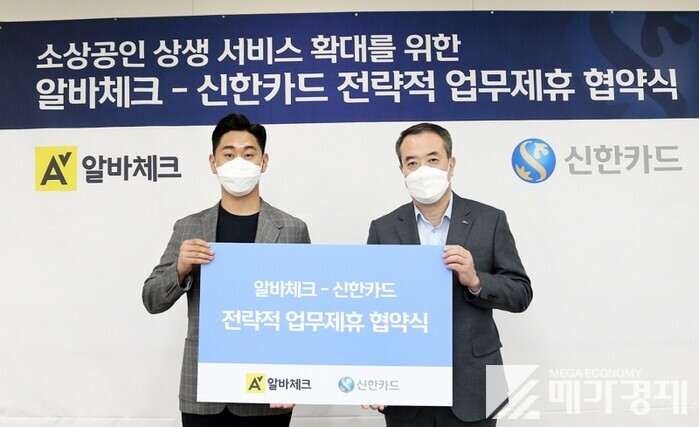 이날 협약식은 안중선 신한카드 라이프 인포메이션 그룹 부사장과 권민재 알바체크 대표 등 관계자가 참석한 가운데 서울 을지로 신한카드 본사에서 열렸다.