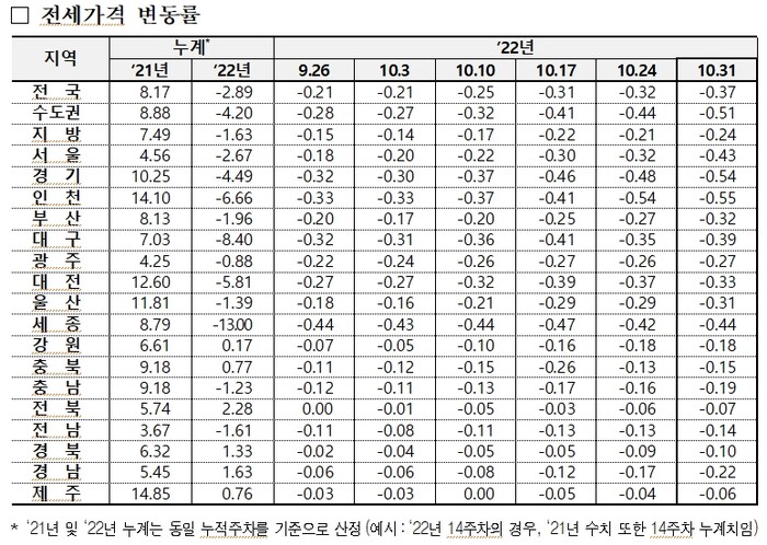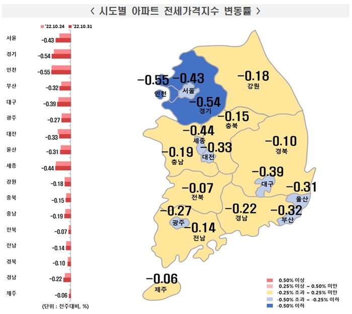 | ▲ 전국 시도별 전세가격 변동률. [한국부동산원 제공] |