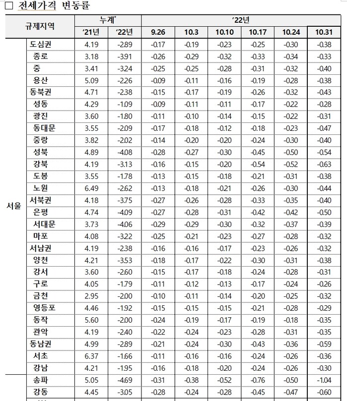 | ▲ 서울 전세가격 변동률. [한국부동산원 제공] |