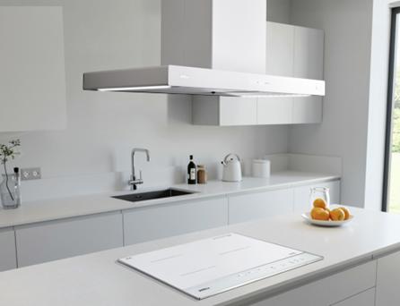 주요 소재는 화이트 도장 마감으로 모던하고 밝은 주방 분위기를 연출한다. 제품 전체에 라운드 처리를 적용해 기존 각진 아일랜드 후드와 차별화된 부드러운 외관을 구현했으며, 좌우에 배치된 400㎜ LED 확산 조명이 조리 환경을 은은하고 넓게 밝혀 인테리어 포인트로도 뛰어나다.