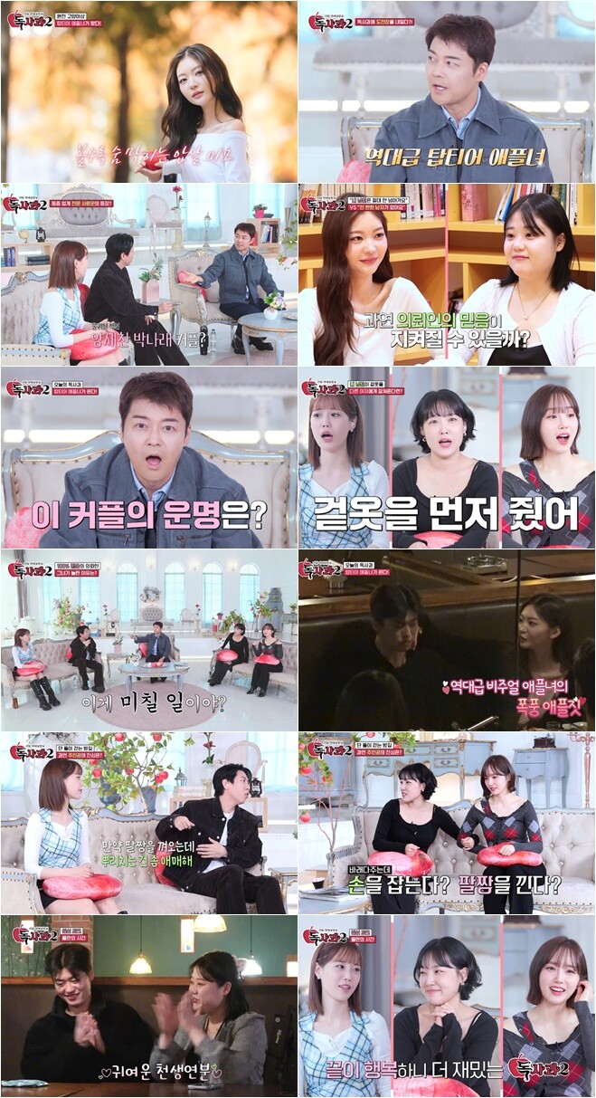 11월 29일 방송된 SBS Plus, Kstar 공동 제작 예능 ‘리얼 연애실험실 독사과 시즌2’(이하 ‘독사과2’) 4회에서는 남자친구와 1년 넘게 사랑을 키워온 의뢰인이 출연해 “내 남자친구는 절대로 (애플녀에게) 안 넘어갈 것”이라며 도전장을 던지는 모습이 공개됐다. 이에 제작진은 철저한 맞춤 설계와 ‘탑티어’ 애플녀를 출격시켜 ‘맹독사과’ 공격을 펼쳤고, 주인공(의뢰인의 남자친구)은 다소 애매한 행동으로 의뢰인은 물론 스튜디오 MC를 혼란케 했지만, ‘최종 독사과’ 앞에서 “여자친구가 있다”고 철벽을 쳐 해피엔딩을 맞았다.