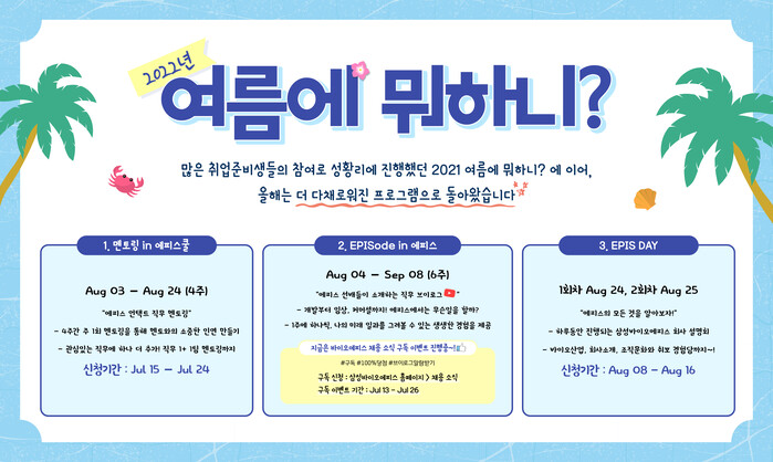 삼성바이오에피스가 지난해에 이어 올 여름에도 대학생 및 대학원생을 대상으로 다양한 리크루팅 프로그램을 마련한다고 14일 밝혔다.