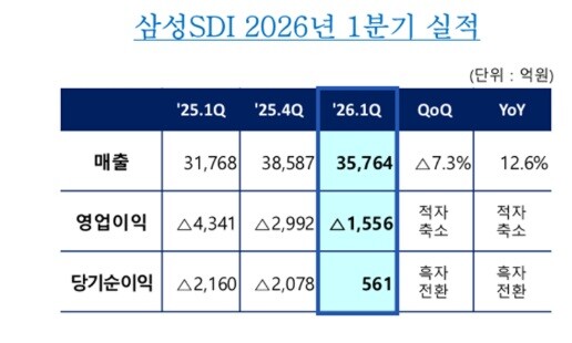 [메가경제=박제성 기자] 삼성SDI는 올해 1분기 매출 3조 5764억 원, 영업손실 1556억 원을 각각 기록했다고 28일 밝혔다.