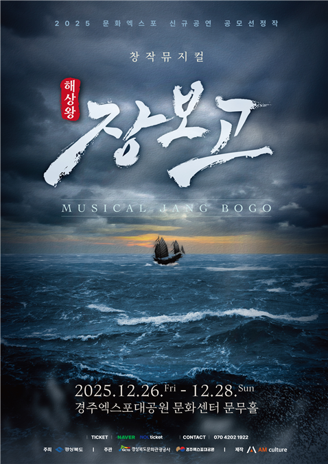 [메가경제=양대선 기자] 2025 문화엑스포 신규 제작공모 선정작 뮤지컬 '해상왕 장보고'가 오는 26일부터 28일까지 총 4회 경주엑스포대공원 문화센터 문무홀에서 관객과 만난다. 본 작품은 신라의 수도 경주를 출발점으로 동아시아 해양 실크로드의 장대한 여정을 무대에 재현해, 2025 APEC 성공 개최로 글로벌 도시로 도약한 경주의 정체성을 새롭게 조명한다.