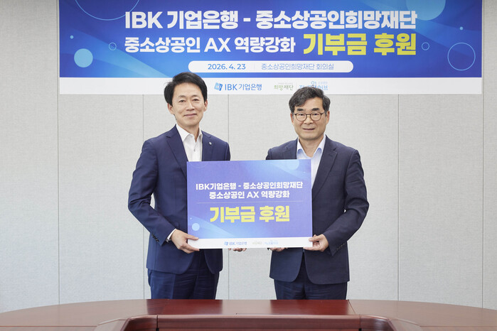 IBK기업은행은 지난 23일 중소상공인희망재단에 기부금 1억원을 전달했다고 24일 밝혔다. 기부금은 재단이 운영하는 ‘중소상공인 AX아카데미’ 프로그램에 활용된다.