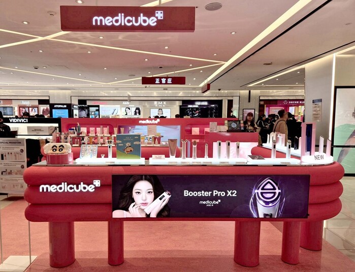 이번에 오픈한 메디큐브 정식 매장에서는 메디큐브 에이지알(AGE-R) 뷰티 디바이스와 기초 화장품을 비롯해 에이지알 신제품 ‘부스터 프로 X2’를 추가로 선보였다.