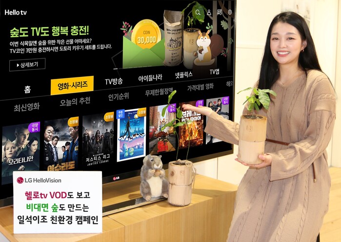 오는 8일까지 헬로tv 코인을 3만 원 이상 충전하면 캠페인에 자동으로 참여하게 된다. LG헬로비전은 캠페인 참여 고객에 헬로tv 코인 5000원을 추가 증정하고, 도토리 키우기 키트도 선물한다.