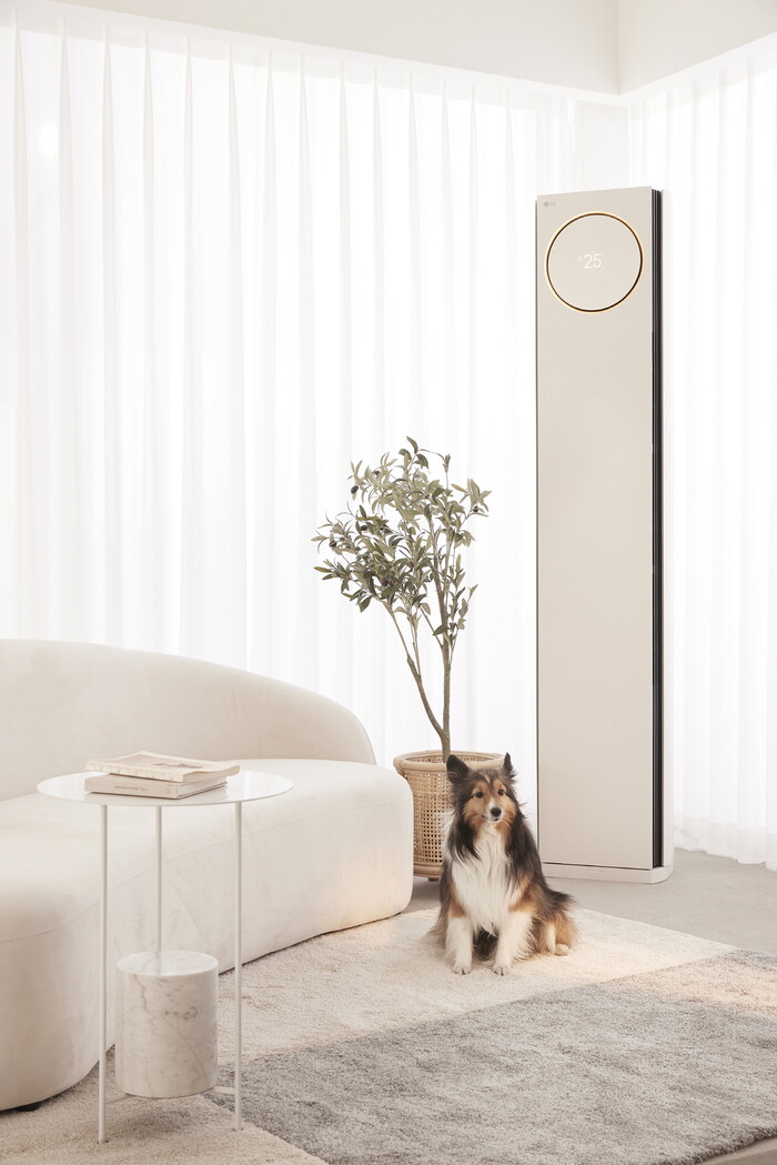 펫케어 모드는 실내 온도가 설정값에 도달하면 반려동물이 덥지 않도록 냉방을 켜주거나 LG 씽큐 앱을 통해 원격으로 가동할 수 있게 알려준다.