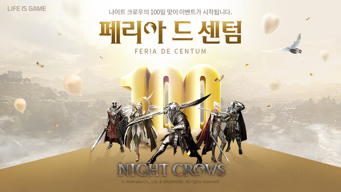 [메가경제=이준 기자] 위메이드(대표 장현국)가 서비스하고 매드엔진(대표 손면석, 이정욱)에서 개발한 대작 MMORPG '나이트 크로우'가 서비스 100일(8월 4일)을 앞두고, 기념 이벤트 페리아 드 센텀(Feria de Centum)를 20일 시작했다.