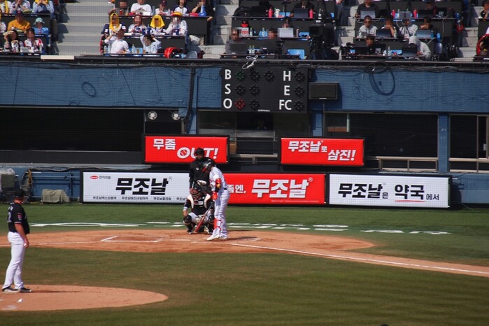 ‘무조날’은 경기 중계 화면에 노출 빈도가 높은 포수 뒤편 회전식 롤링보드 광고를 통해 브랜드 인지도를 높인다. ‘무좀 OUT(아웃)!’, ‘무조날로 삼진!’, ‘무좀엔, 무조날’ 등 야구 경기 상황을 연상시키는 카피를 활용해 무좀 증상 완화에 대한 제품 특성을 직관적으로 전달한다.