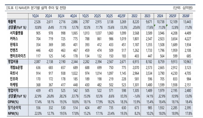 | ▲네이버 2025 연간 실적전망표. [사진=교보증권 리포트] |