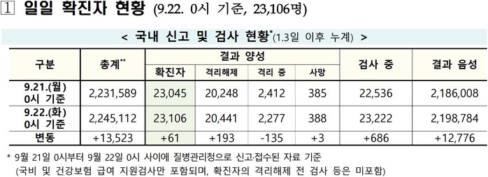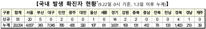 ▲ 22일 0시 기준 코로나19 국내 발생 확진자 현황.[출처= 중앙방역대책본부] |