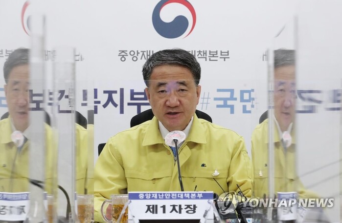 ▲ 박능후 중앙재난안전대책본부 1차장(보건복지부 장관)이 22일 오전 세종시 정부세종청사에서 열린 코로나19 대응 회의를 주재하며 발언하고 있다. [사진= 연합뉴스] |