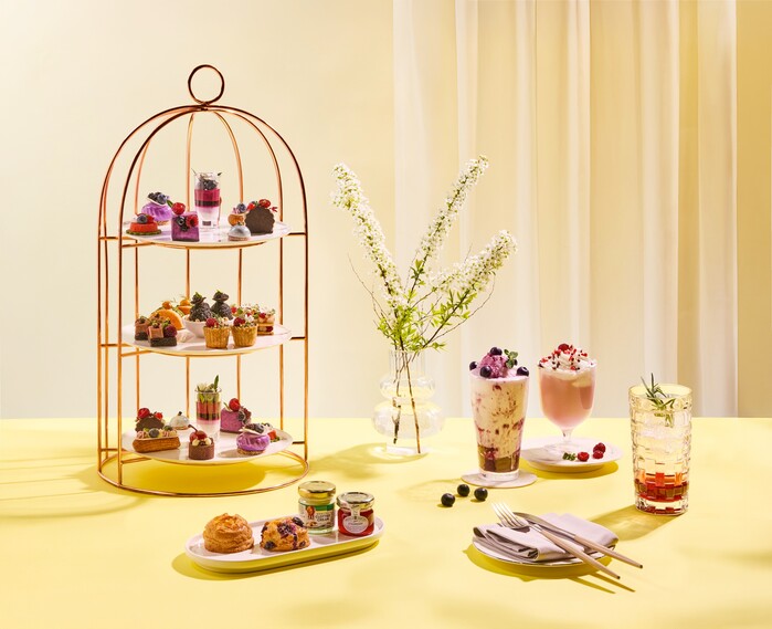 이번 세트는 3단 트레이 구성으로 다양한 베리를 활용한 디저트와 세이보리를 함께 제공하는 것이 특징이다. 블루베리 스콘과 클로티드 크림, 딸기 잼이 포함되며, 시즌 음료 2종도 함께 제공된다. 가격은 2인 기준 8만9000원이다.