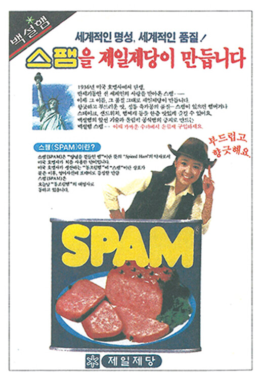 한국에서 스팸의 역사는 6·25전쟁과 맞닿아 있다. 전후 극심한 식량난 속에서 미군 군수물자를 통해 유입된 스팸은 귀중한 단백질 공급원이었고, 이후 부대찌개라는 독특한 한식 메뉴로 정착했다. 국내 정식 생산은 1987년 CJ제일제당이 호멜과 기술 제휴를 맺으며 시작됐다. 첫해에만 500톤, 매출 70억 원을 기록하며 빠르게 대중화됐다.