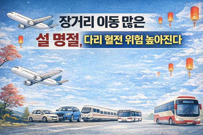 [메가경제=주영래 기자] 민족 최대 명절 설을 앞두고 고향 방문과 해외여행 등 장거리 이동을 계획하는 이들이 늘고 있다. 항공기·기차·버스·자가용 등 좁은 공간에서 장시간 같은 자세로 머무는 일이 불가피해지면서 이른바 ‘이코노미 클래스 증후군’으로 불리는 심부정맥 혈전증(DVT) 위험도 함께 커지고 있다.