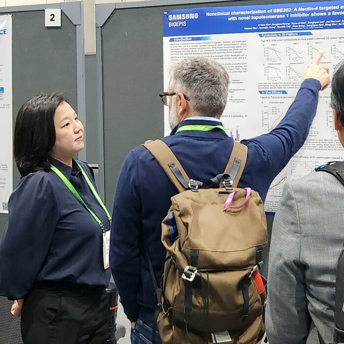 삼성바이오에피스가 현지시간 20일 현장 포스터 발표 세션을 통해 공개한 전(前)임상 결과에 따르면, SBE303은 기존 넥틴-4 표적 치료제 대비 항체의 종양세포 결합 특이성과 세포 내 약물 전달 효율이 개선된 것으로 확인했다.