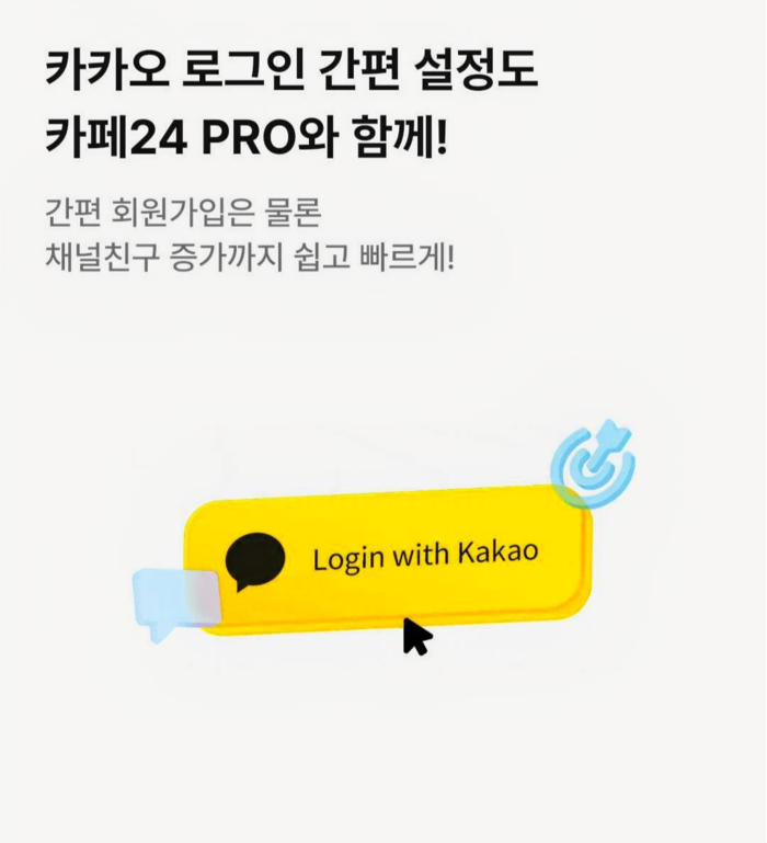 카페24 PRO는 이러한 기술적 진입 장벽을 낮추기 위해 카카오싱크 도입 전 과정을 지원한다. 쇼핑몰 운영자는 카페24 PRO 앱에서 서비스를 신청하기만 하면 된다. 이후 앱 생성, 채널 연동, 동의 항목 구성, 비즈니스 채널 전환 등 카카오싱크 도입에 필요한 기술적 설정은 카페24가 일괄 처리한다. 설정이 완료되면 쇼핑몰 메인 페이지에 ‘카카오 로그인’ 버튼이 자동으로 활성화돼 즉시 간편가입 기능을 활용할 수 있다.