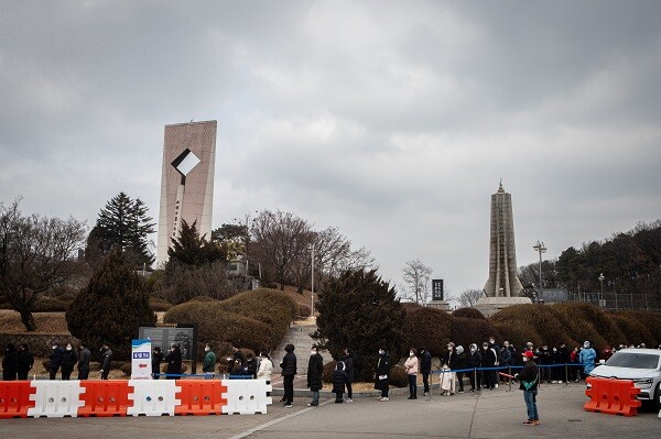 ▲ 28일 경기도 파주시 통일공원 코로나19 선별검사소에서 시민들이 검사를 위해 줄지어 대기하고 있다. [파주=연합뉴스] |