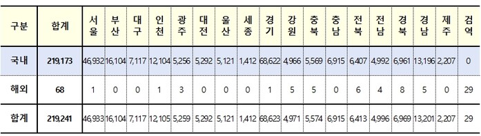 비수도권 중에서는 부산(1만6104명)과 경남(1만3196명) 등 2곳이 1만명대를 기록했다.