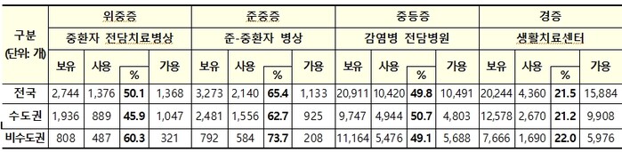 ▲ 코로나19 병상 보유량 및 가동률 현황. [중앙방역대책본부 제공] |