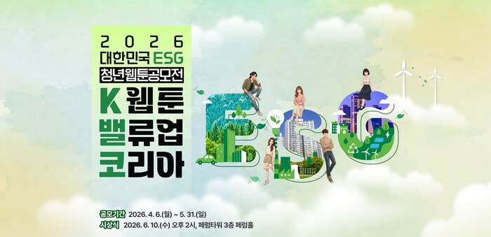 웹툰 산업의 지속 가능한 성장과 차세대 인재 발굴을 목표로 하는 ‘2026 대한민국 ESG 청년웹툰공모전’이 ‘K웹툰 밸류업 코리아’라는 주제로 오는 5월 31일까지 전국 청년 창작자들의 작품을 모집한다.