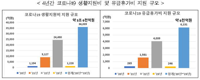 | ▲ 4년간 코로나19 생활지원비 및 유급휴가비 지원 규모. [질병관리청 제공] |