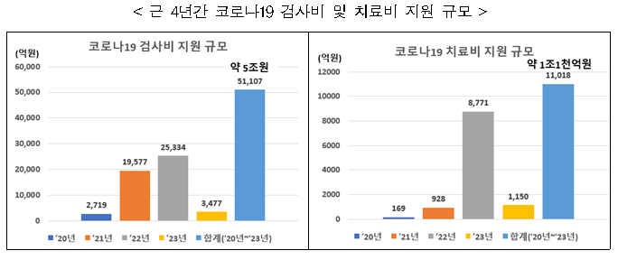 | ▲ 4년 간 코로나19 검사비 및 치료비 지원 규모. [질병관리청 제공] |