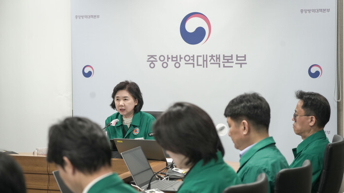 | ▲ 지영미 질병관리청장이 지난 19일 코로나19 중앙사고수습본부(중수본) 회의를 주재하고 있다. [질병관리청 제공] |